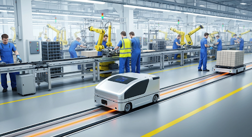 Manufacturing facilities are one of the biggest users of AGVs, with the sector accounting for a large portion of the market. In these environments, AGVs are used to create "smart factories" by automating the flow of materials, parts, and finished products.